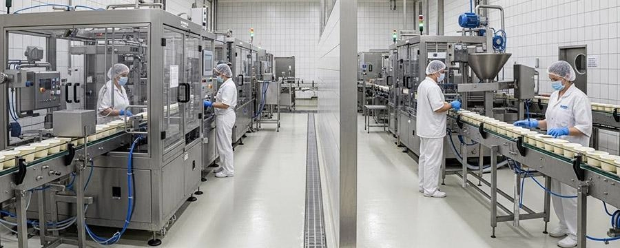 Seu desafio: Separar áreas de alto risco de contaminação, manter o controle de fluxo entre zonas e atender aos requisitos de certificações de qualidade (ISO 22000, FSSC).